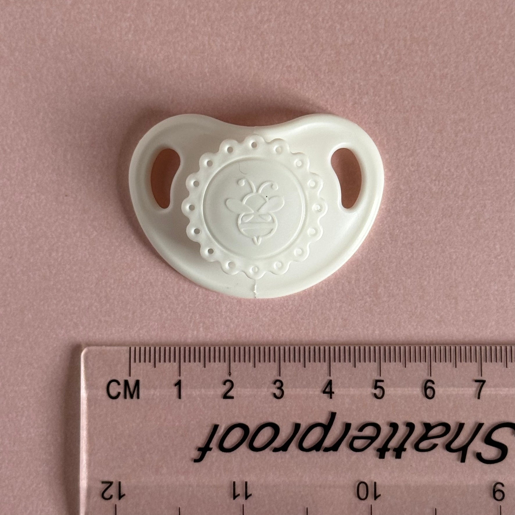 HoneyBug dummies are specially designed for reborn dolls, there's no need to glue the magnet in these you can just snap off the cap and pop the magnet in the right way round to fit your doll and pop the cap back on.