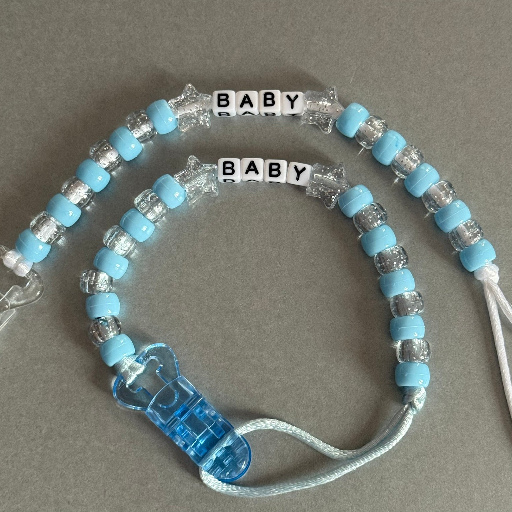 Beautiful Blue & Glitter Personalised Dummy Clip, Handmade by me at Granny P's Nursery