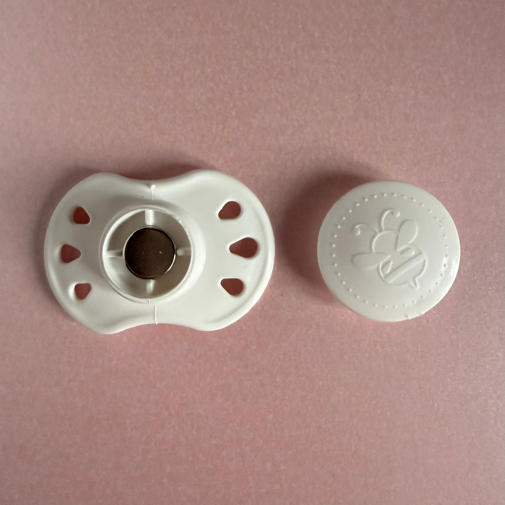 HoneyBug dummies are specially designed for reborn dolls, there's no need to glue the magnet in these you can just snap off the cap and pop the magnet in the right way round to fit your doll and pop the cap back on.